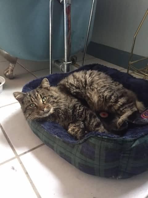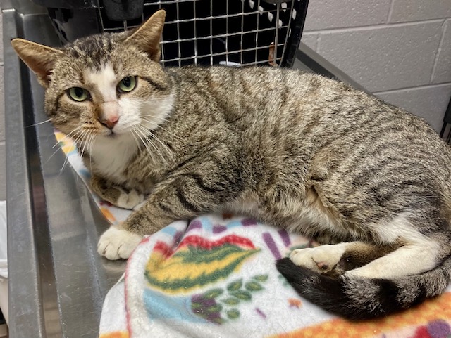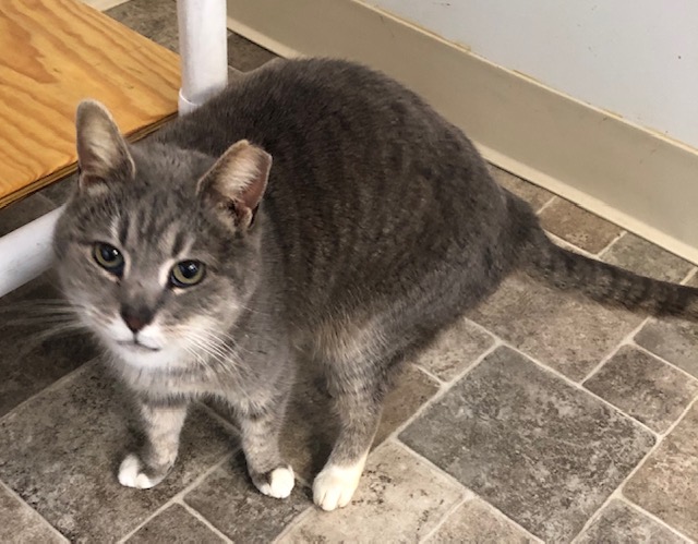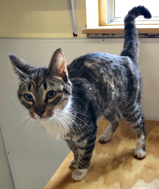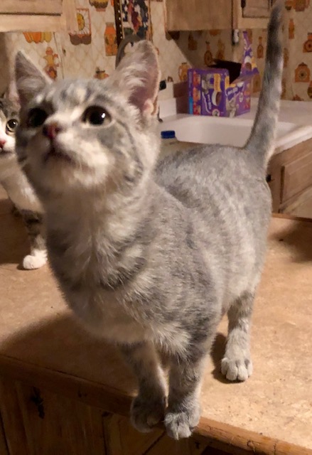 Female, SH, Silver Tabby; LOVES TO BE PETTED |