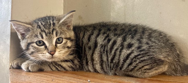 Male, SH, Brn/Blk Tiger, TIMID BUT LEARNING TO TRUST |