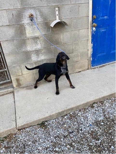 He is a young hound mix and was brought in with his brother and
