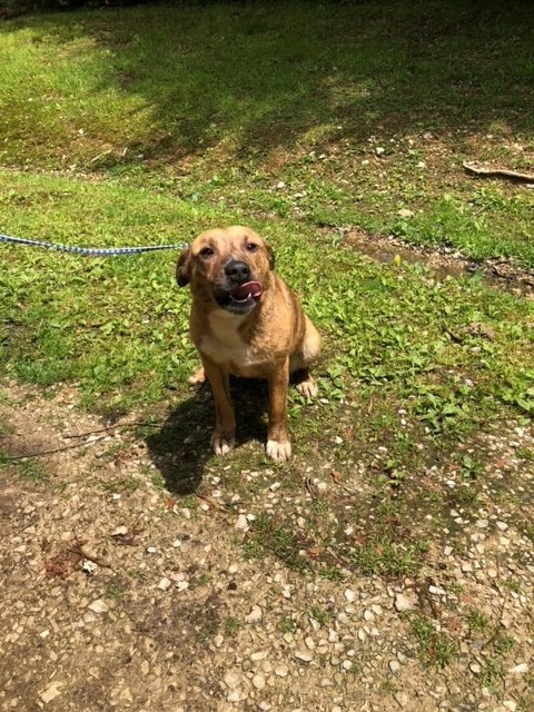 He is a 1year old Mountain Cur mix.